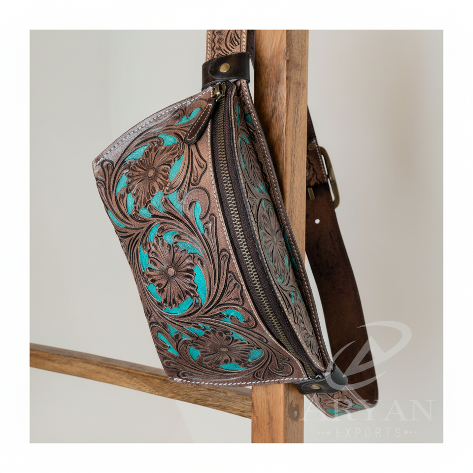 Product Name:Hand Tooled Leather Fanny Pack & Waist Bag