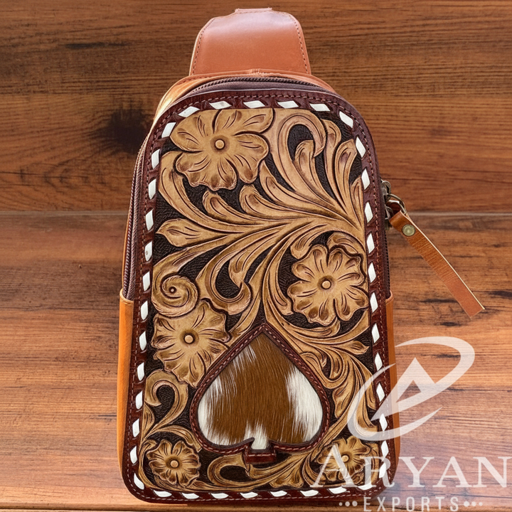 กระเป๋าหนังสะพายข้างลายดอกไม้หนังวัวแบบตะวันตกกระเป๋าพาดลำตัวหนังแท้กระเป๋าสะพายไหล่กระเป๋าพาดลำตัว