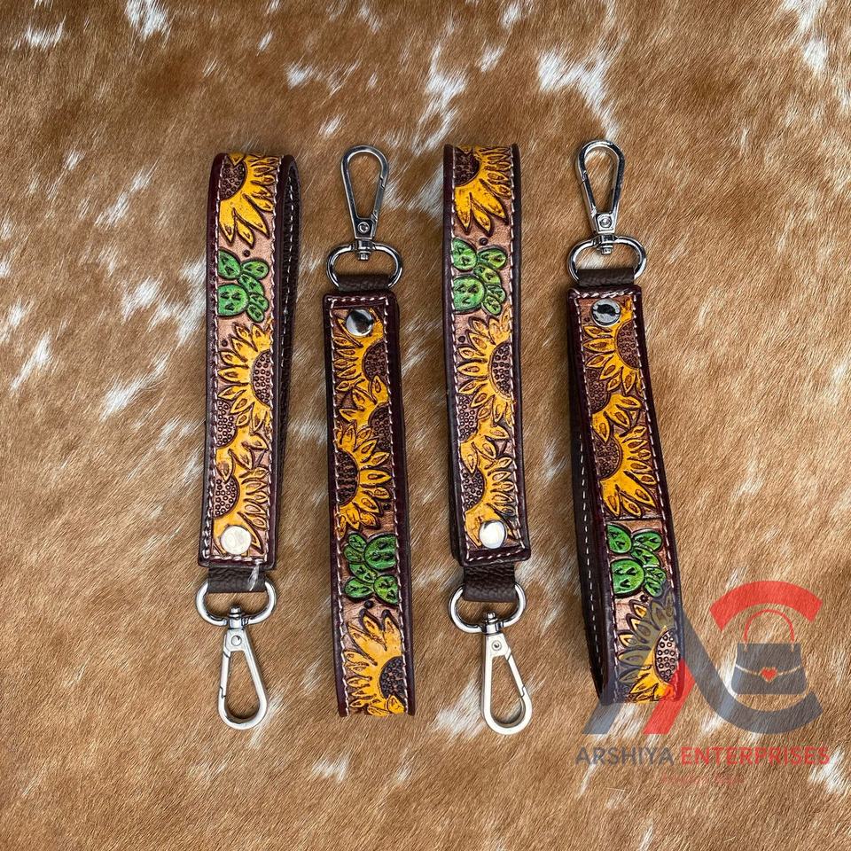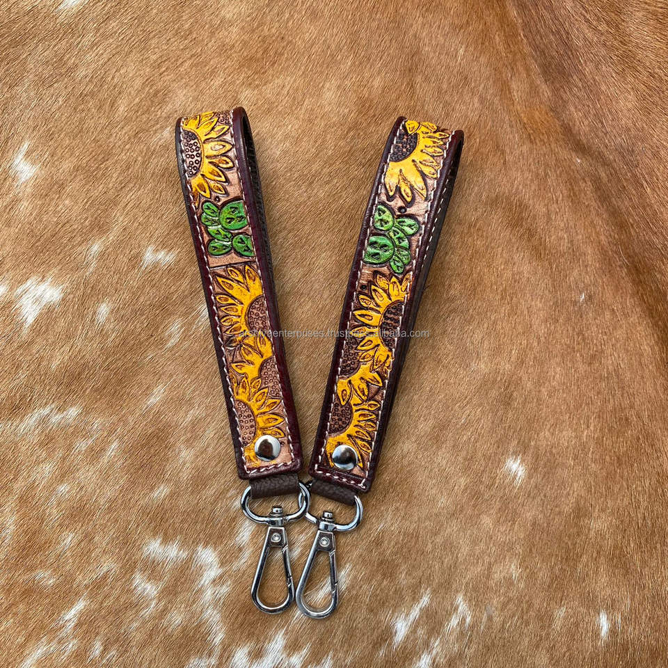 สายรัดข้อมือหนังมีคลิปหนีบกุญแจหนังแบบตะวันตกพวงกุญแจแบบมีสายคล้องข้อมือ