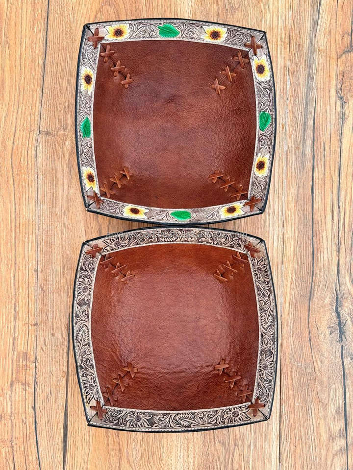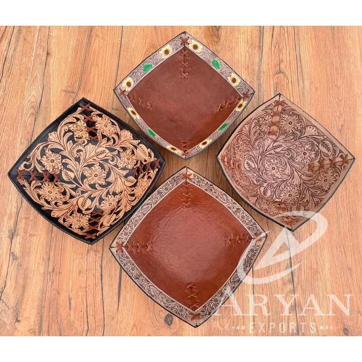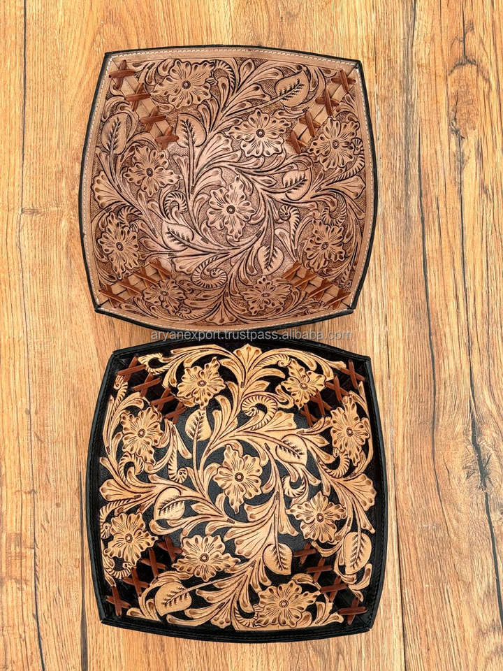 ถาดหนังเป็นเครื่องมือชามหนังแท้ตะวันตกสำหรับตกแต่งบ้านคอลเลกชันเครื่องใช้ในบ้านที่ทำด้วยมือตกแต่งอย่างมีสไตล์