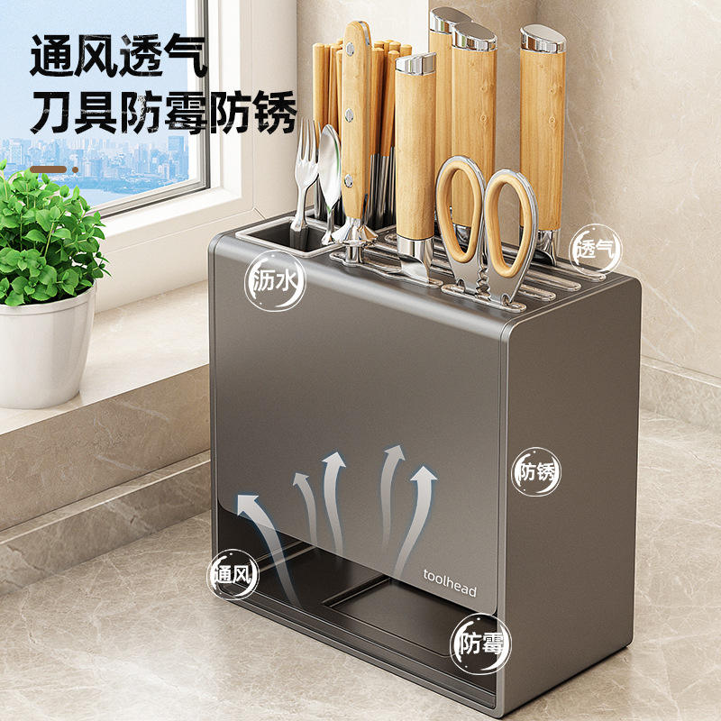 ที่วางมีดสี่เหลี่ยม สแตนเลส แห้งเร็ว ระบายอากาศได้ดี สำหรับจัดเก็บในครัว ที่วางมีดบนเคาน์เตอร์