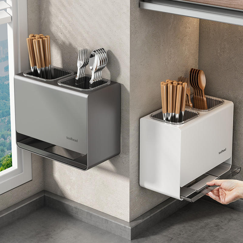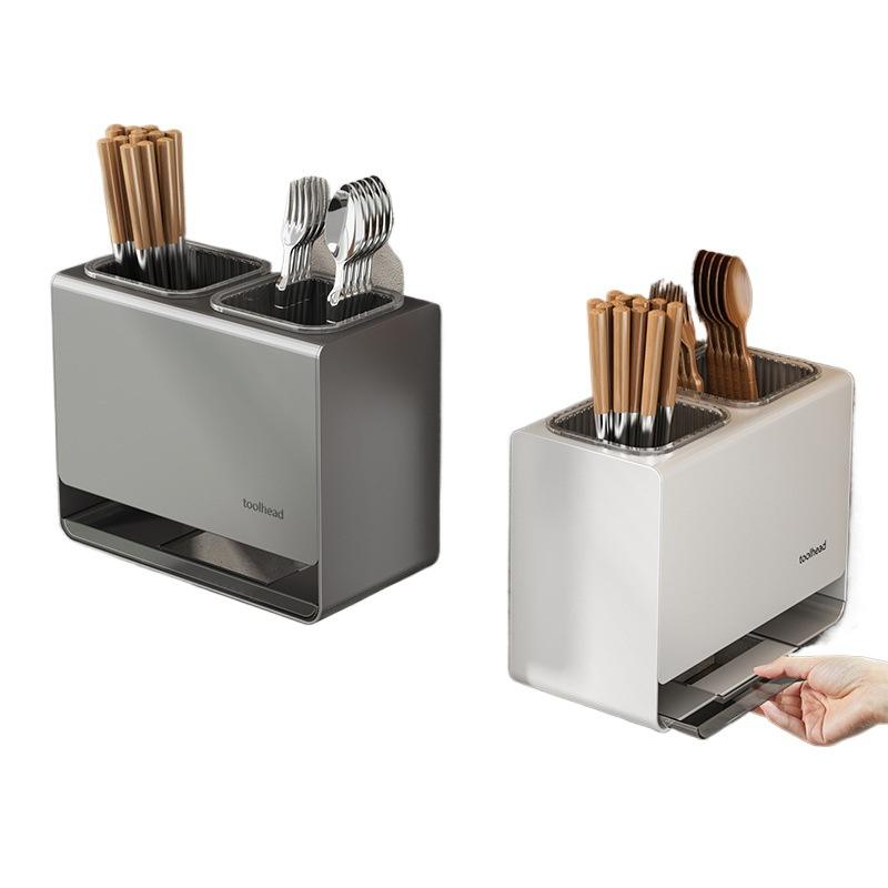 สีเทาปืน| ที่ใส่มีดและกล่องตะเกียบ [ติดผนัง]