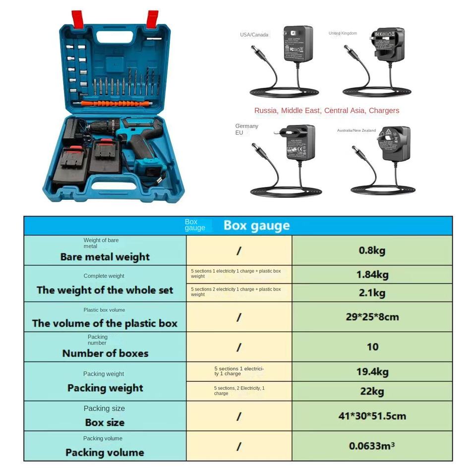 เครื่องมือสว่านไฟฟ้าไร้สายไขควงไร้สายแบบพกพาชุดเครื่องมือสว่านไฟฟ้าชุดเครื่องมือคอมโบ