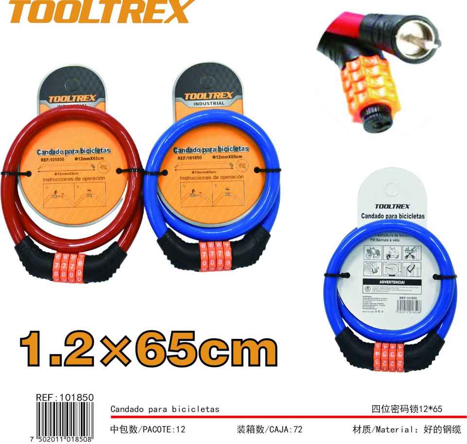 ทูลเทร็กซ์ สายล็อคจักรยาน 1.2x65 ซม. สายเหล็กแบบผสม สำหรับความปลอดภัยของจักรยาน