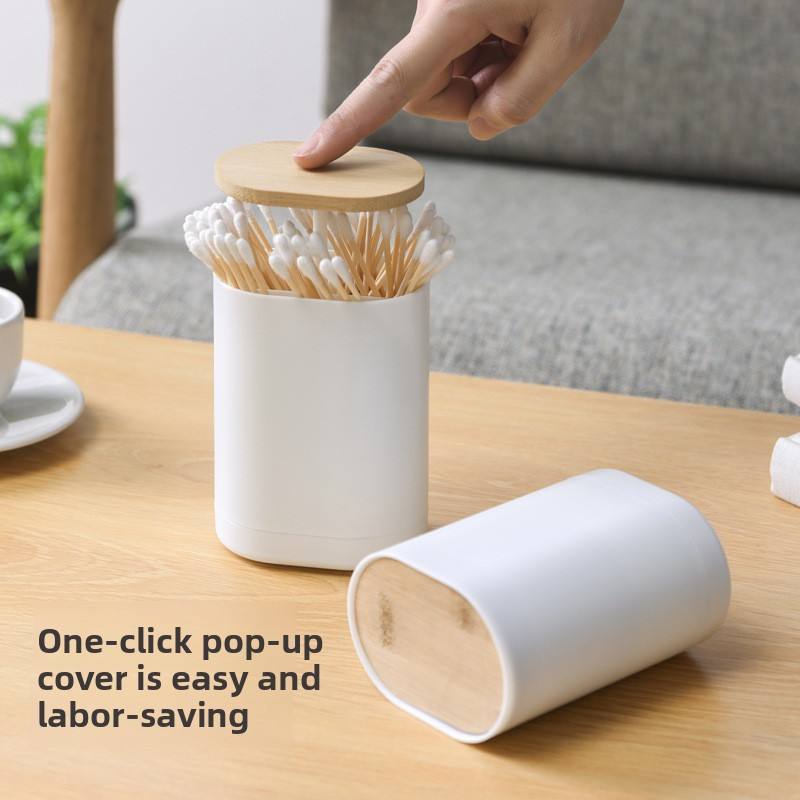 กล่องไม้จิ้มฟันแบบกดอัตโนมัติแบบป๊อปอัพกล่องใส่สำลีสุดสร้างสรรค์สำหรับไม้จิ้มฟันที่บ้านไม้จิ้มฟัน