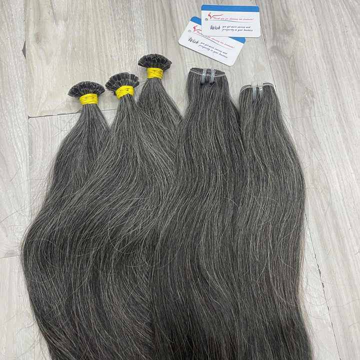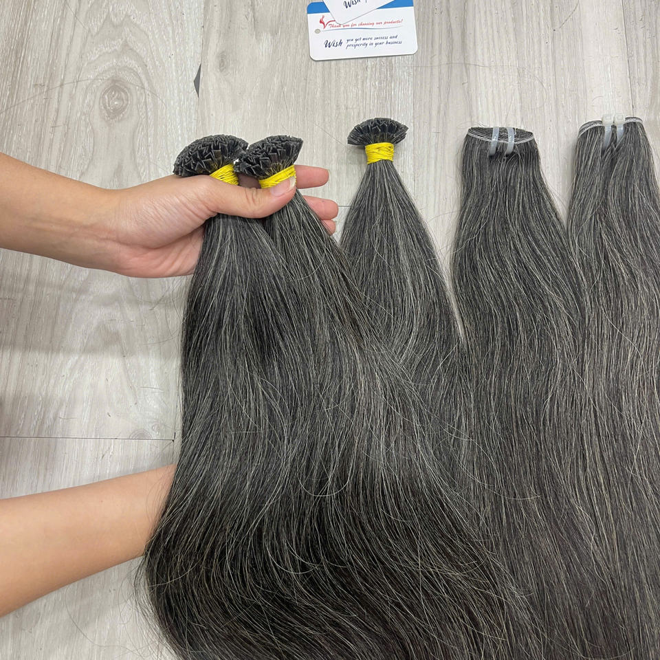 [ค้นหาอันดับ 1] ผมแท้สีเทา Ktips - 100% ไม่ผ่านการแปรรูปจากผู้บริจาคคนเดียว - ผู้จำหน่ายต่อผมสีเทาธรรมชาติแบบเกลือและพริกไทย