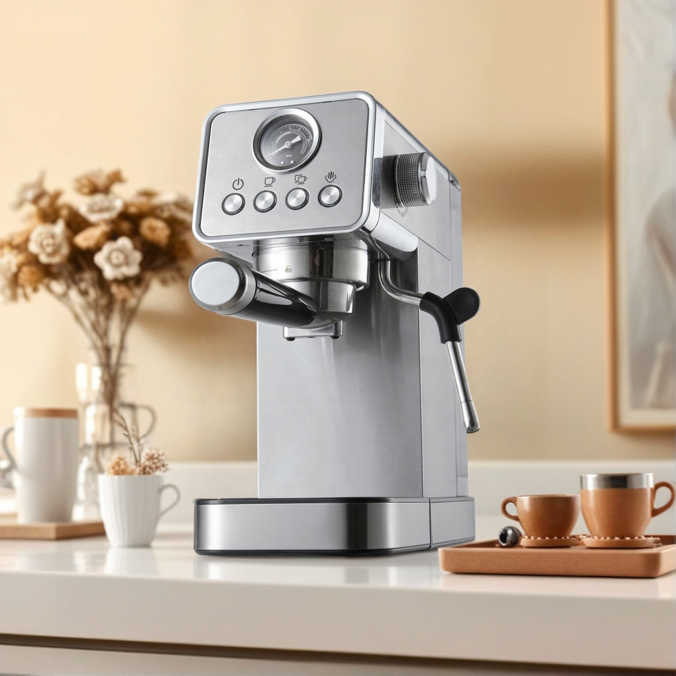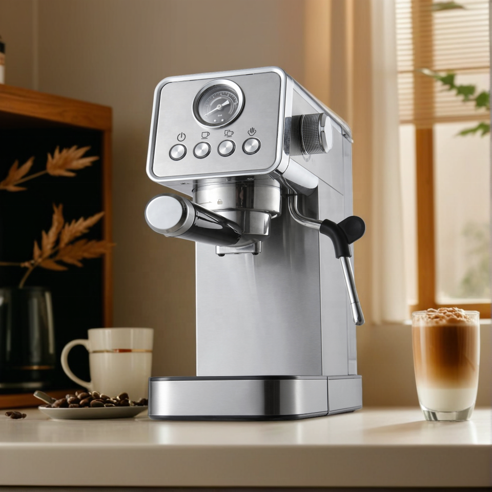 เครื่องชงกาแฟเอสเพรสโซขนาดเล็กสำหรับใช้ในบ้านแบบมืออาชีพ5เครื่องตั้งโปรแกรมได้กึ่งอัตโนมัติสแตนเลสไฟฟ้า20บาร์ใช้ในครัวเรือน