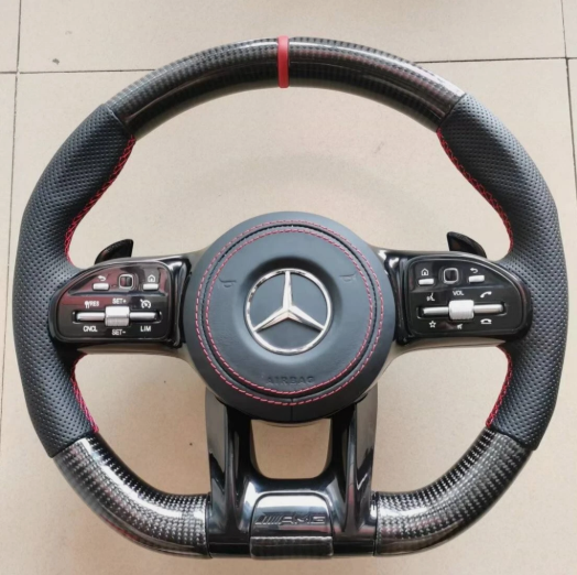 พวงมาลัยเมอร์เซเดส-เบนซ์ AMG ของแท้รุ่นใหม่ - ตกแต่งด้วยคาร์บอนไฟเบอร์, เย็บด้ายสีแดง, ติดตั้งง่ายแบบ Plug & Play