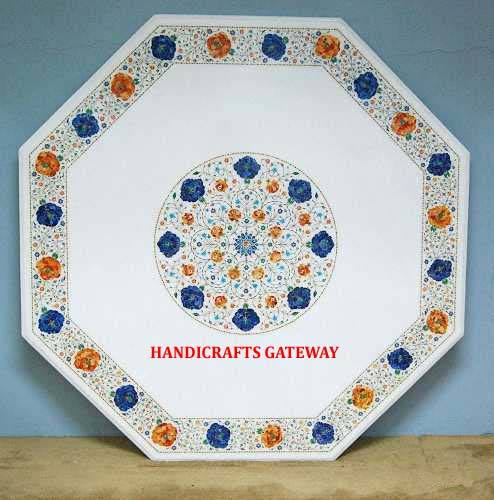 ท็อปโต๊ะหินอ่อนสีขาวฝังลาย