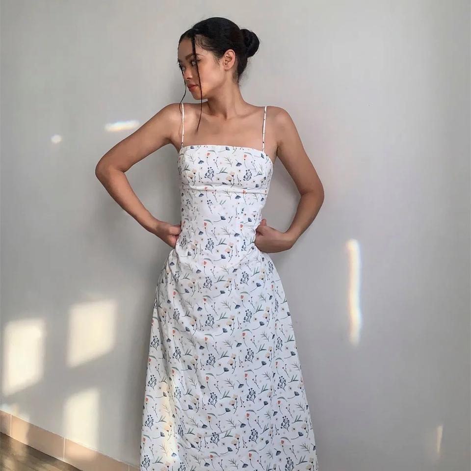 ชุดเดรสฤดูใบไม้ผลิของผู้หญิงผ้าชีฟองทรงพอดีตัวเสื้อพิมพ์ลายดอกไม้มาใหม่