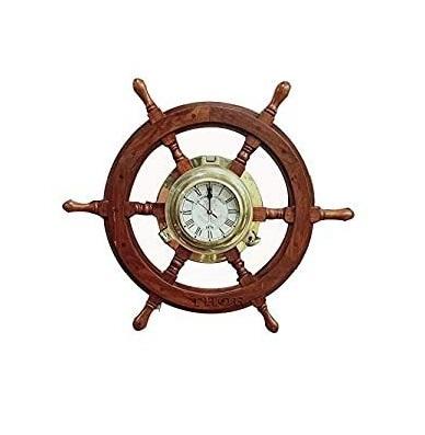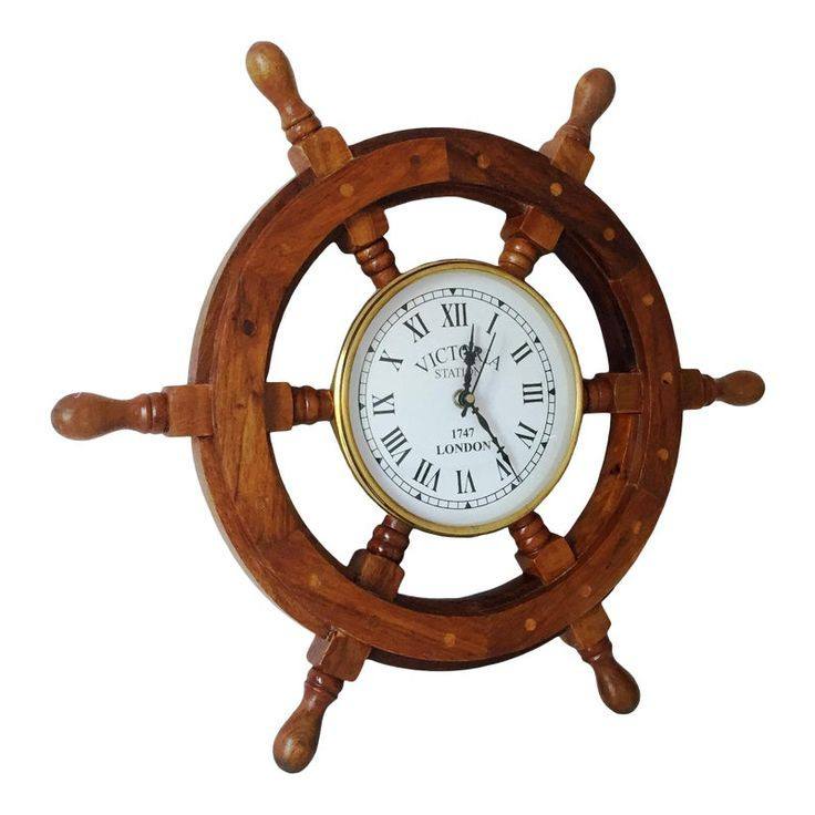 นาฬิกาแขวนล้อไม้ดีไซน์โบราณตกแต่งบ้านนาฬิกาแขวนล้อเดินทะเลนาฬิกาแขวนล้อเรือ