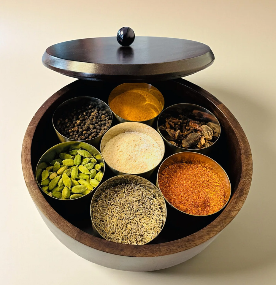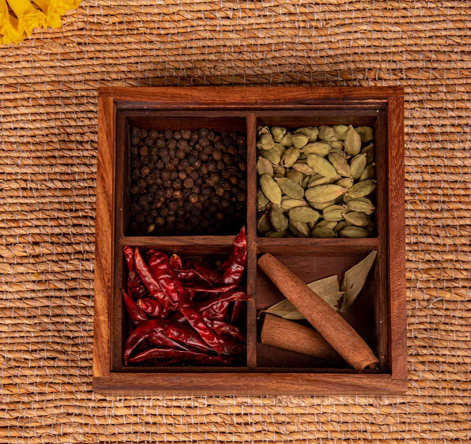 กล่องเครื่องเทศไม้ทรงสี่เหลี่ยม งานแฮนด์เมด ดีไซน์สวยงาม กล่องแบ่งช่อง 4 ช่อง ผลิตในราคาถูกที่สุด