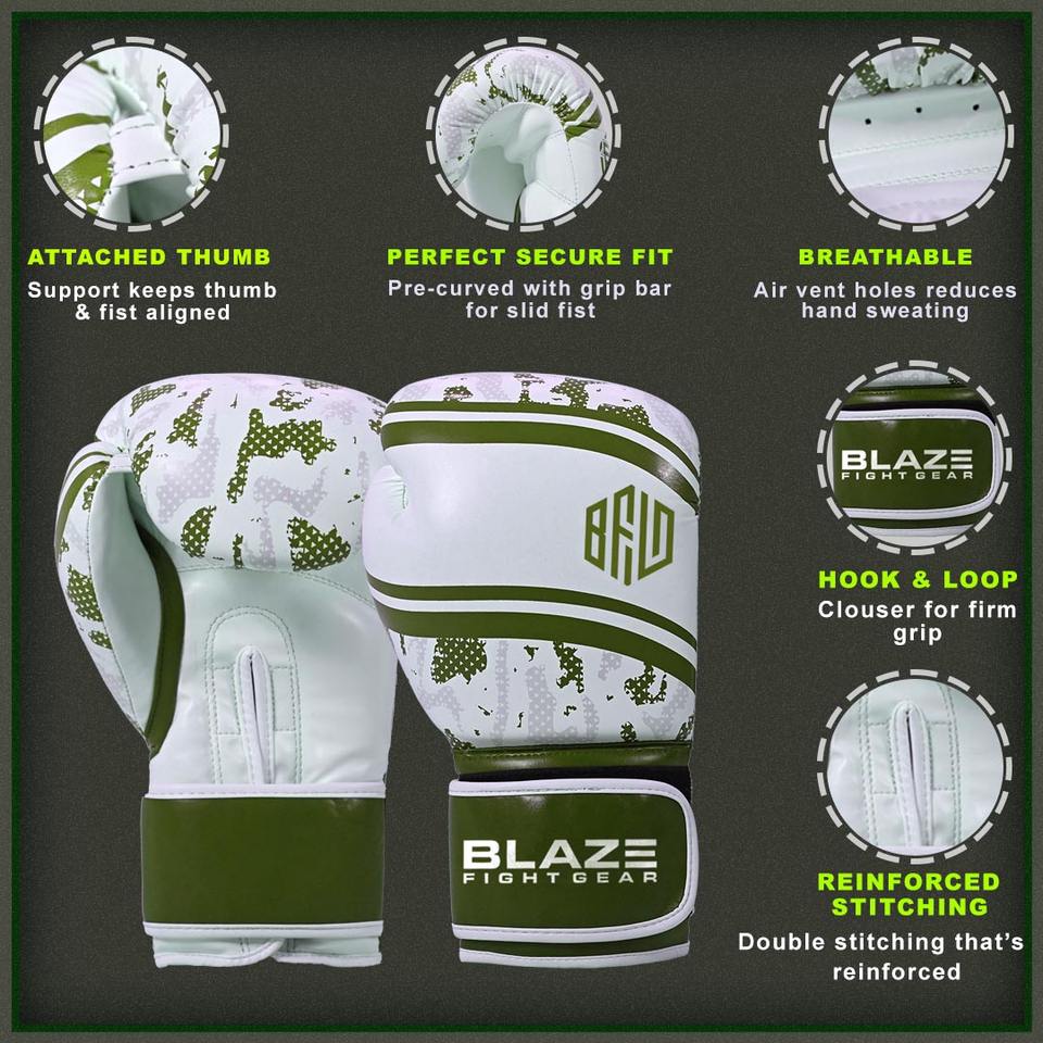 ถุงมือชกมวย BLAZE FIGHT GEAR ULTRA Pro Grade หนังแท้ ระบายความชื้น ปิดด้วยแถบตีนตุ๊กแก สำหรับการฝึกซ้อมและคิกบ็อกซิ่ง