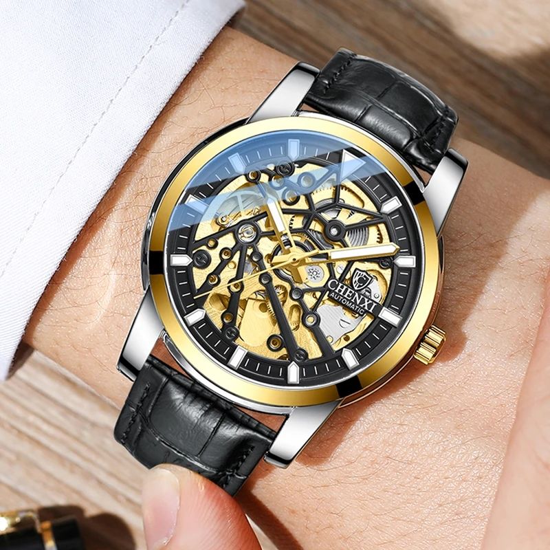 8812 Chenxi นาฬิกากลไกจักรกลแบบกลวงระบบอัตโนมัติเต็มเรือนหรูหราสายเหล็กกันน้ำข้อมือของผู้ชายเรืองแสง