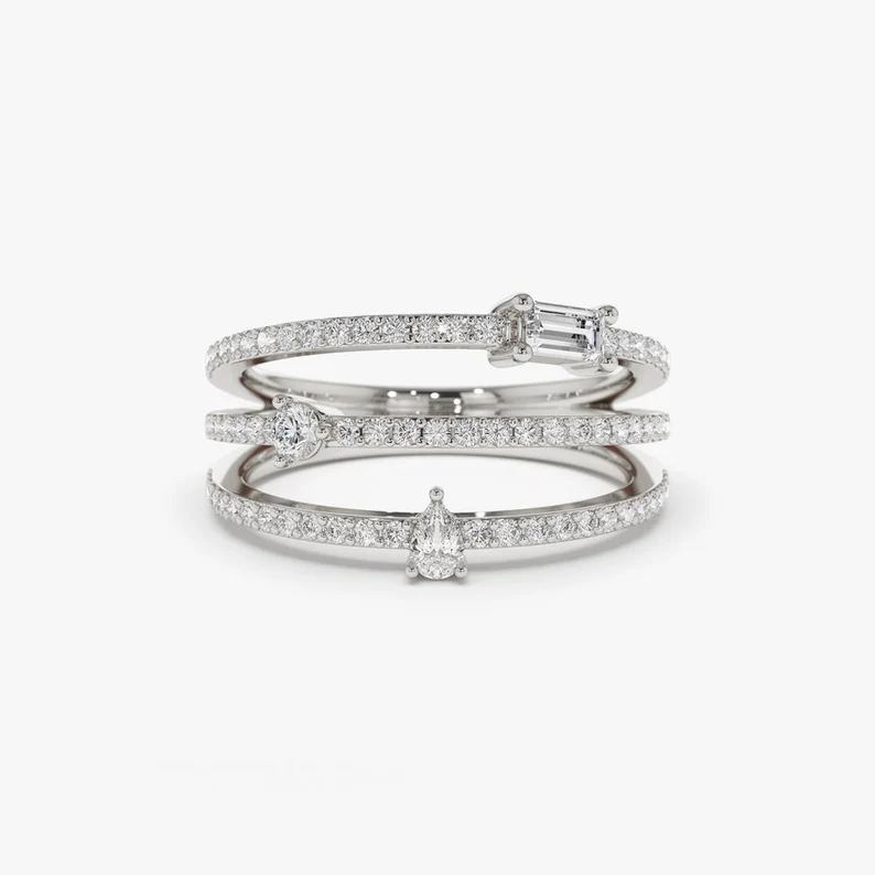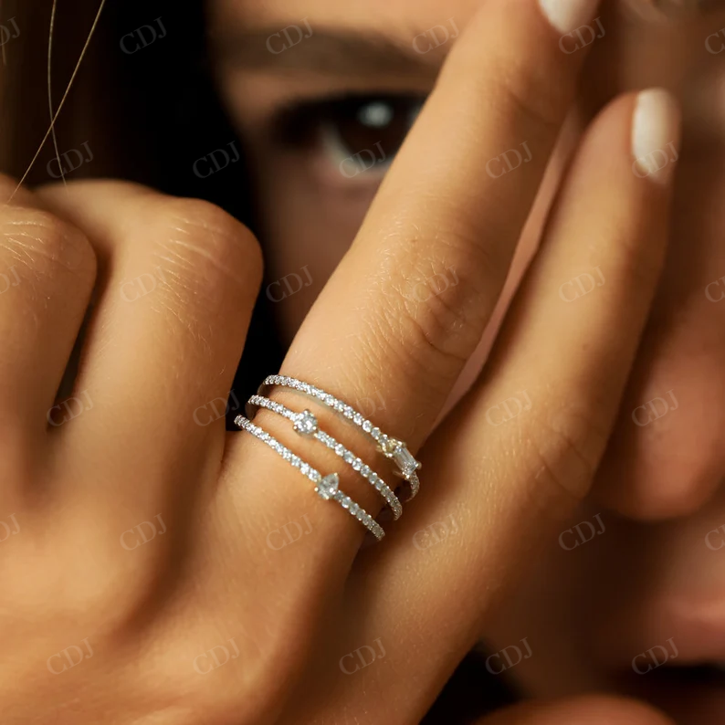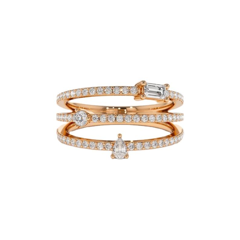 วงแหวนเพชรหลายแถว14K สีทองแบบปรับแต่งได้สำหรับผู้หญิงแหวนเพชรหลายสายสำหรับห้องปฏิบัติการ