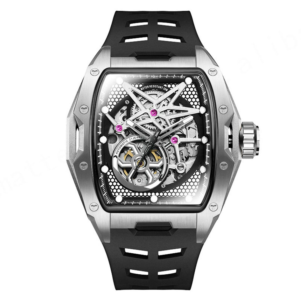 นาฬิกาข้อมือผู้ชายแบรนด์ดัง DG 8166 ระบบจักรกล ดีไซน์หรูหรา กระจกแซฟไฟร์ กันน้ำ เรืองแสง ตัวเรือนสแตนเลส สายซิลิโคน