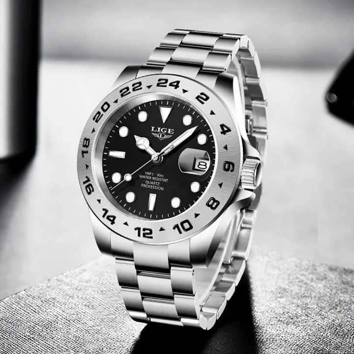 นาฬิกาสแตนเลส8947ชั้นนำ Lige นาฬิกาบอกเวลาสองเวลาเรืองแสงกันน้ำนาฬิกากีฬาแฟชั่นผู้ชายนาฬิกาควอตซ์2025