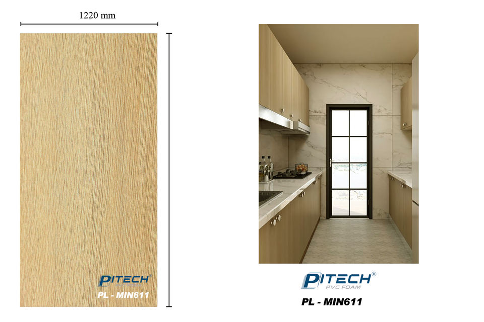 แผ่นไม้อัดเมลามีนยี่ห้อดัง Pitech รุ่นโมเดิร์น ขนาด 1220x2440 มม. หนา 9 มม. พร้อมผิวหน้าวีเนียร์เมลามีน สำหรับตกแต่งภายใน