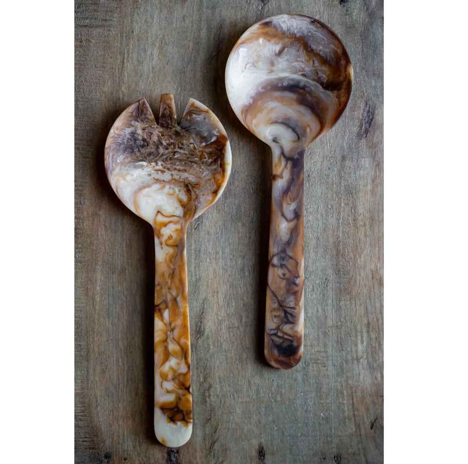 ชุดช้อนส้อมสลัดเรซิ่นลายหินอ่อนสีน้ำตาล ชุดอุปกรณ์เสิร์ฟอาหารในครัว สำหรับผสมอาหาร บนโต๊ะอาหาร งานฝีมือ