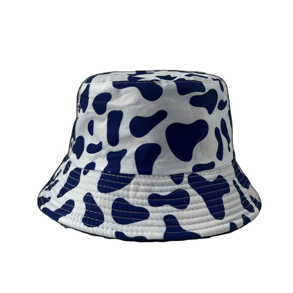 หมวกบักเก็ตแฟชั่นระดับท็อป รับทำโลโก้ คุณภาพสูง ลายวัว ผลิตจำนวนมาก รับผลิตแบบ OEM สวมใส่ได้สองด้าน