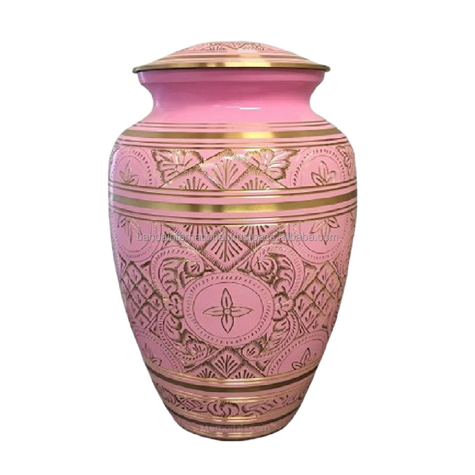 โกศทองเหลืองสำหรับเผาศพพร้อมเพชรดีไซน์สุดคลาสสิกและสีชมพูสำหรับขี้เถ้าของคน