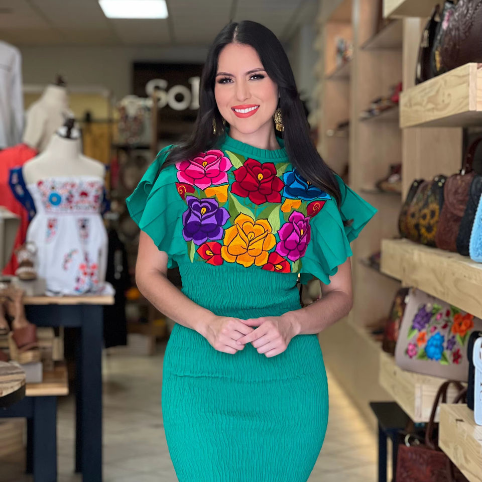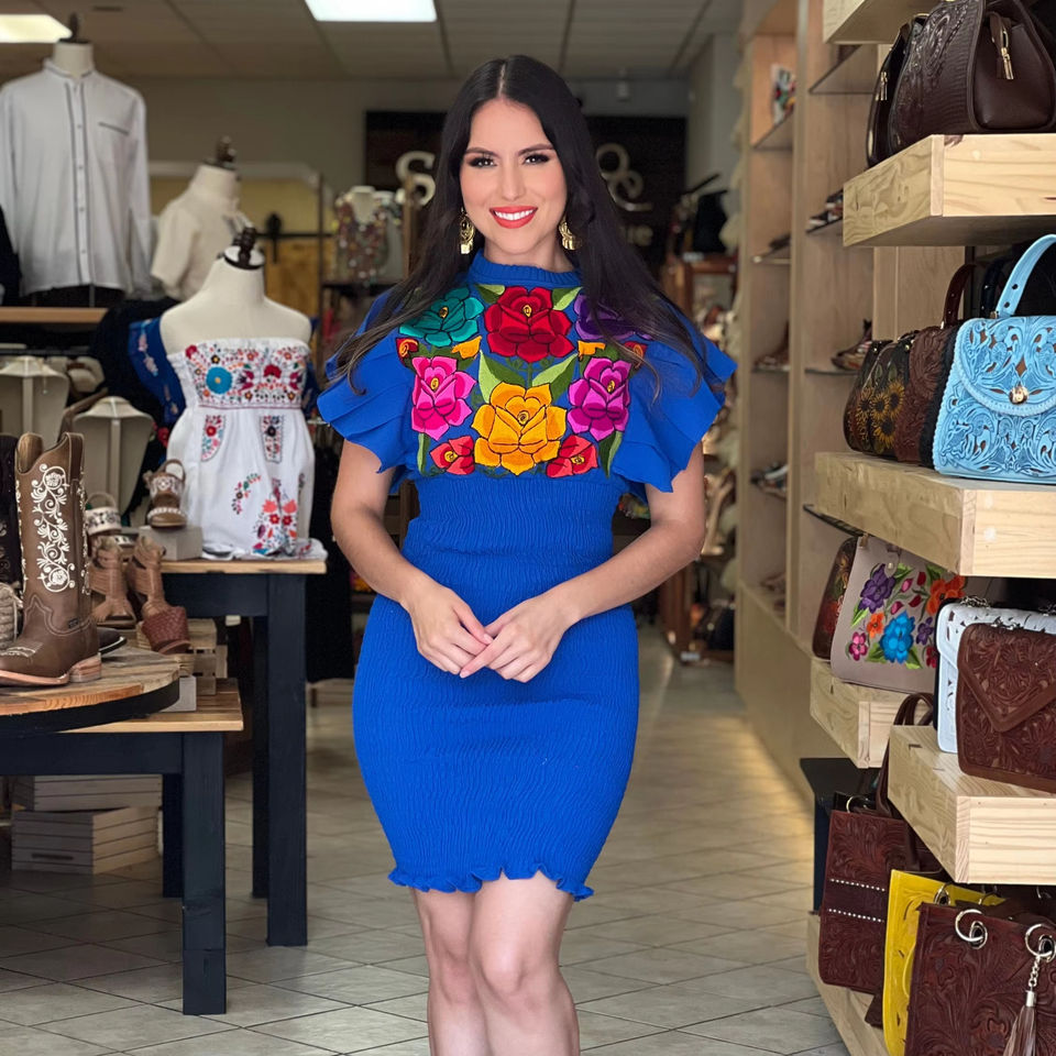 ชุดเดรสสั้นปักลายเมกซิกันสีสันสดใสสไตล์วินเทจแบบดั้งเดิมสำหรับฤดูร้อน