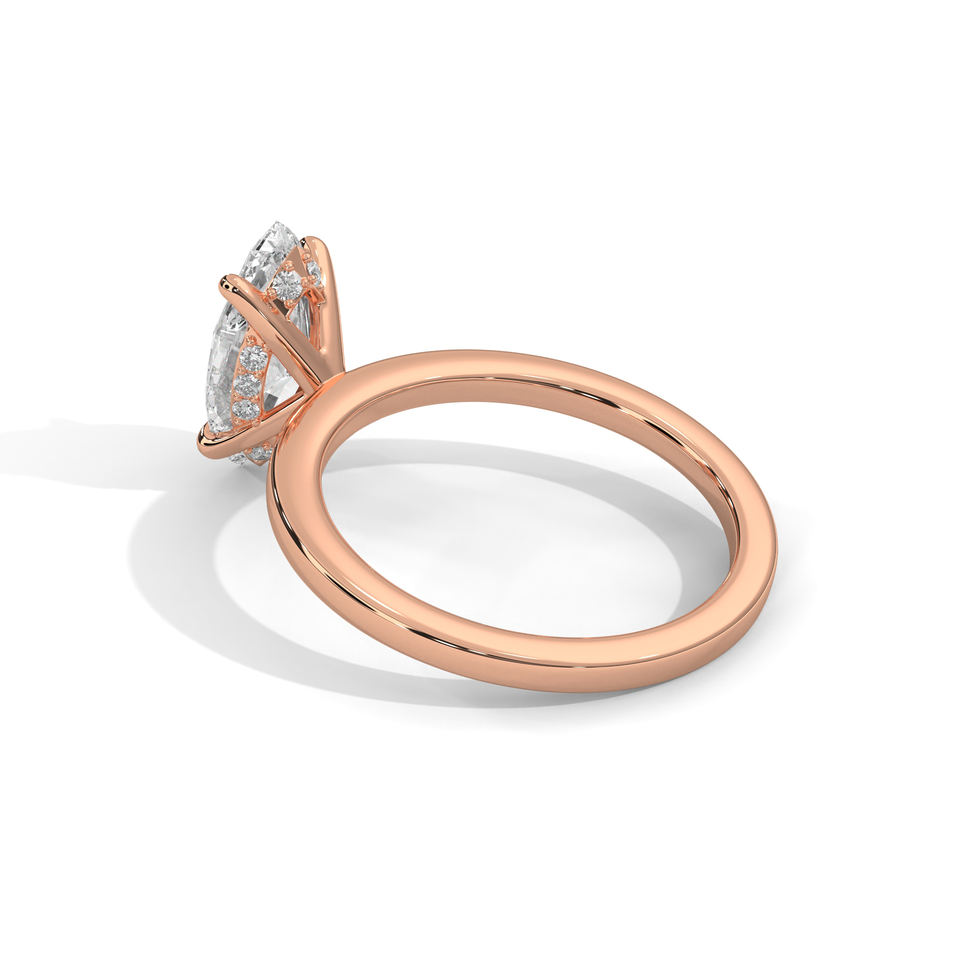 แหวนหมั้นเพชรทรงมาร์คีส์สั่งทำพิเศษ ดีไซน์คลาสสิก เพชรเลี้ยงในห้องปฏิบัติการ ตัวเรือนทองคำแท้ 10k 14k สีโรสโกลด์ ประดับด้วยวงแหวนรอบเพชรแบบซ่อน หรูหราสำหรับงานแต่งงาน