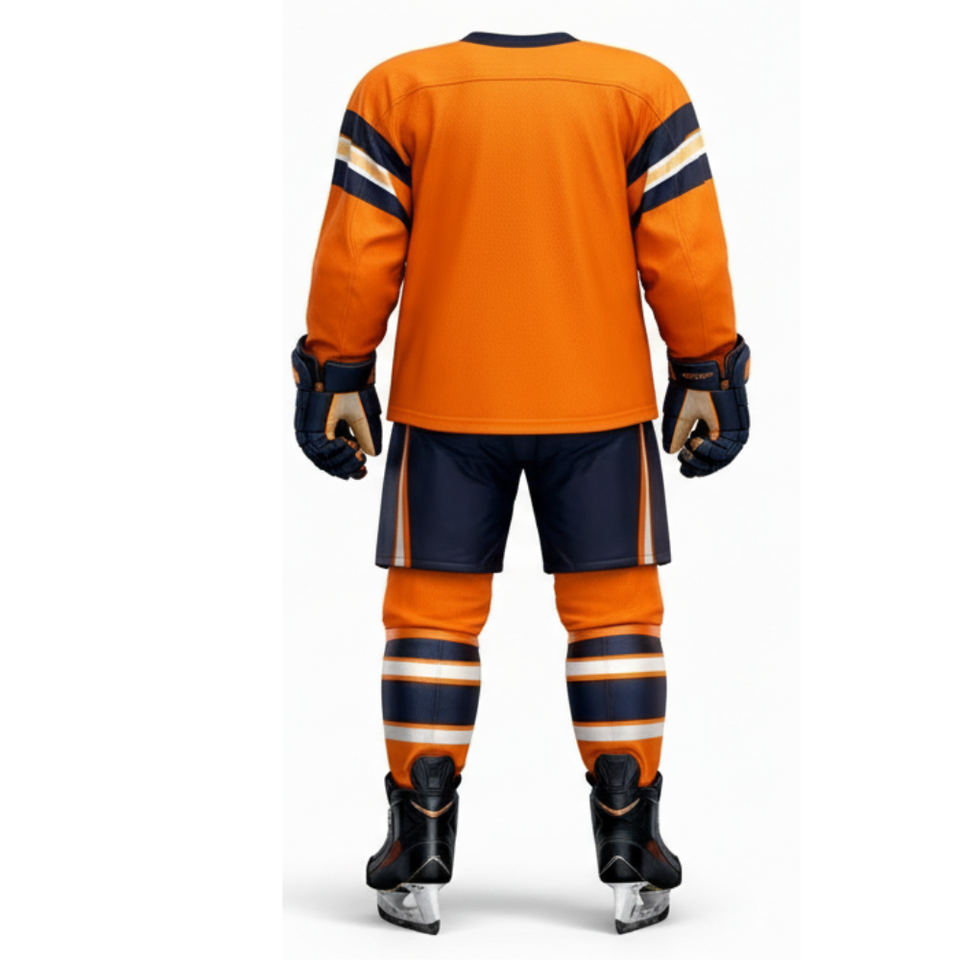 ชุดยูนิฟอร์มฮอกกี้น้ำแข็งแบบสั่งทำพิเศษ ระบายอากาศได้ดี แห้งเร็ว สีส้ม กรมท่า ขาว ดีไซน์ตัดกัน ชุดกีฬาสำหรับมืออาชีพ ยอดนิยม