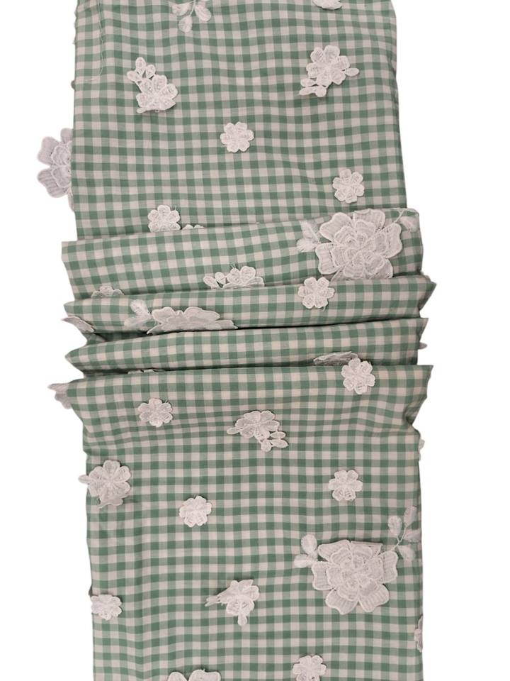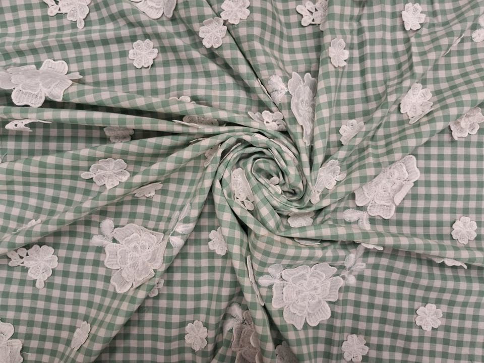 ผ้าฝ้ายลายตารางสีเขียวขาวสำหรับเด็กผู้หญิง ยอดนิยม ตกแต่งด้วยลายปักดอกไม้ 3 มิติ ระบายอากาศได้ดี น้ำหนักเบา เหมาะสำหรับตัดชุด