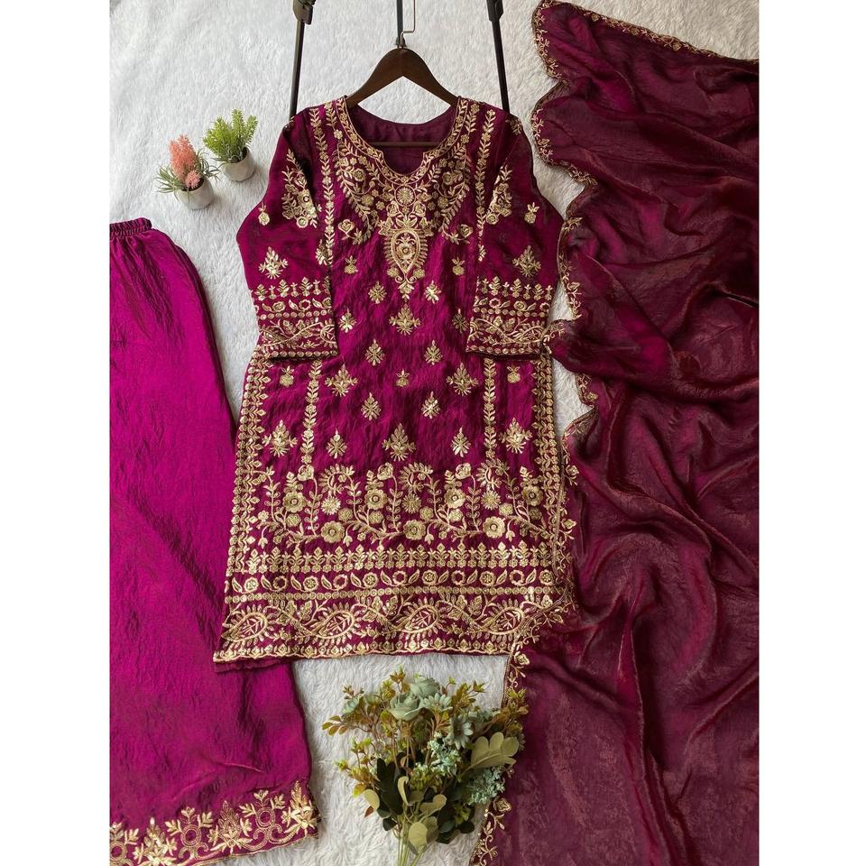 ชุดเสื้อผ้าอินเดียสุดหรูยอดนิยม พร้อมกางเกงพลลาโซและผ้าคลุมไหล่ สำหรับงานแต่งงาน ใช้วัสดุ FENDY ไม่ยับง่าย แบรนด์ TENNECY