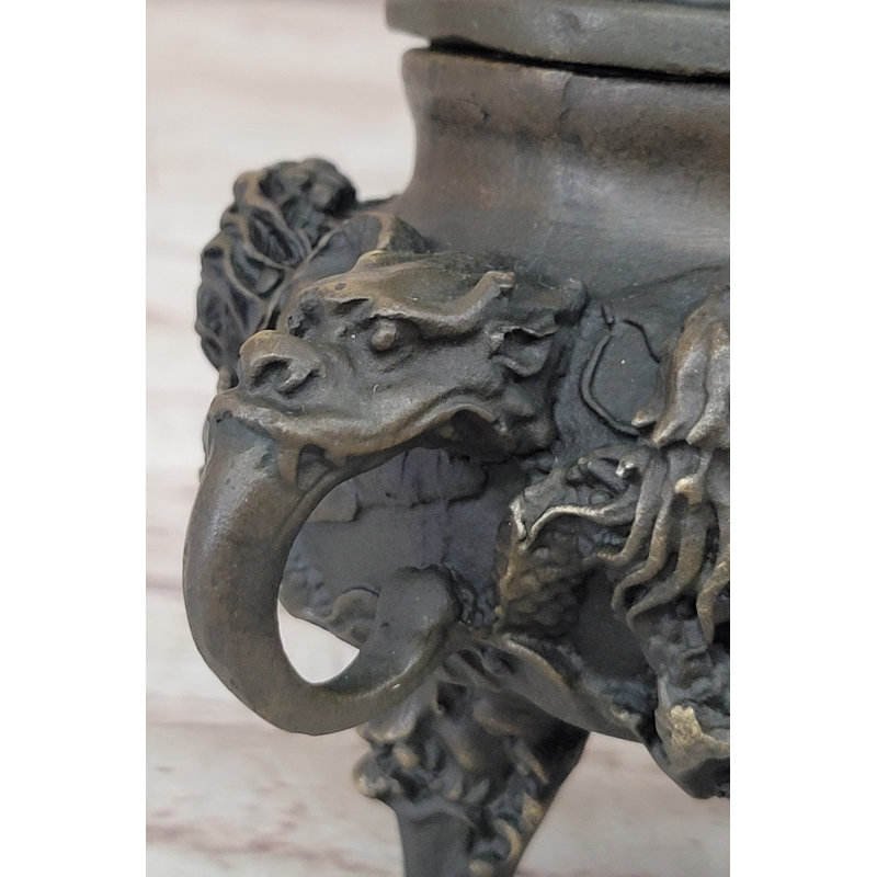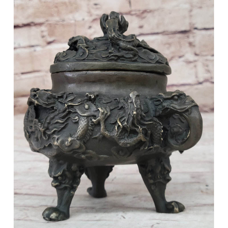 กระถางธูปทองเหลืองพร้อมฝาปิดดีไซน์ทำด้วยมือเหมาะสำหรับการทำสมาธิและสง่างามอุปกรณ์เสริมบนโต๊ะสีน้ำตาล
