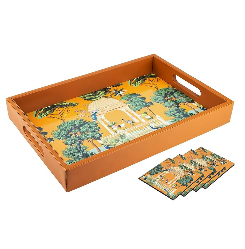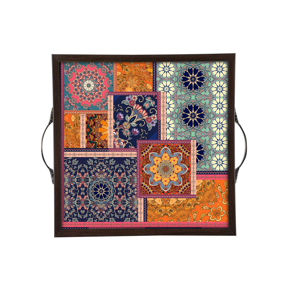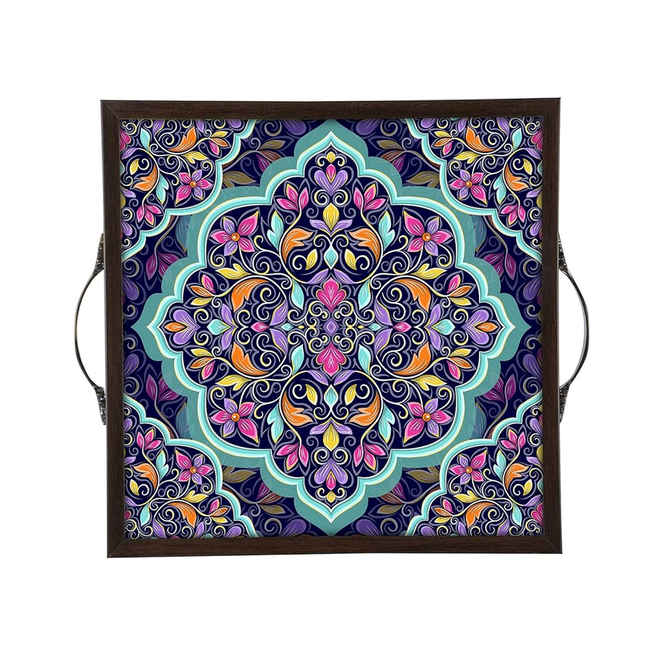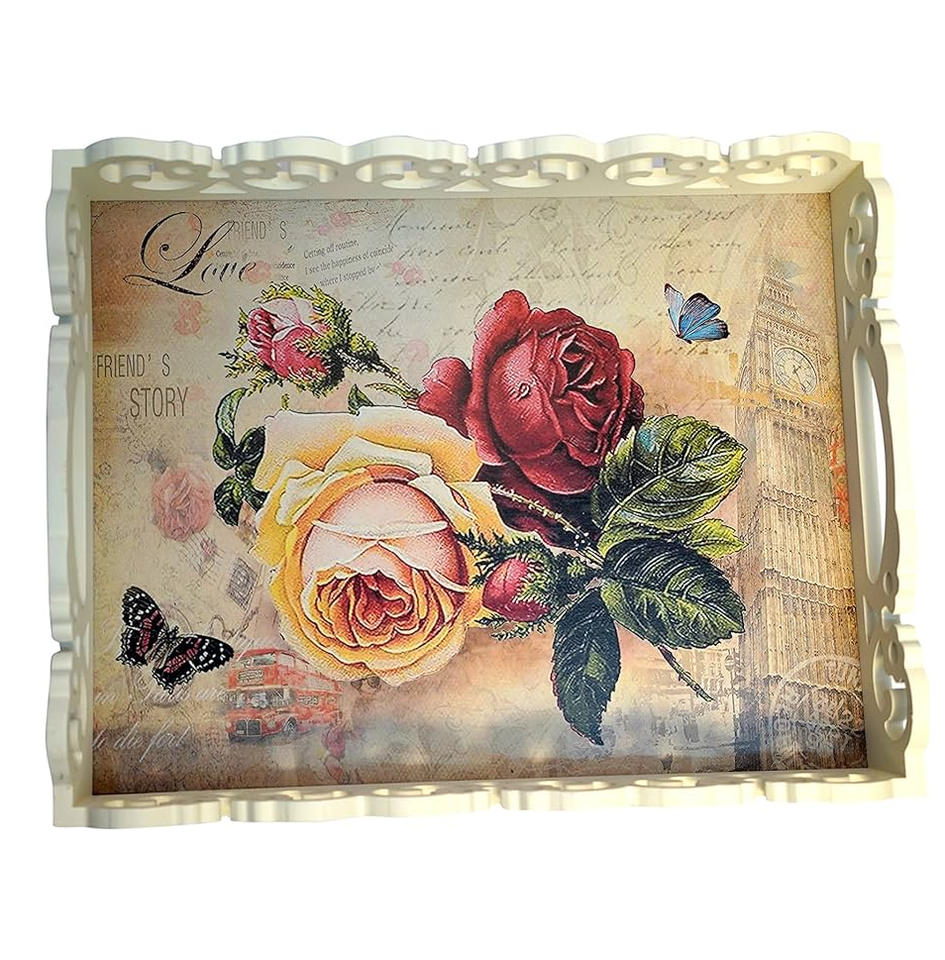 ถาดเสิร์ฟอาหารดีไซน์ยอดนิยมขัดเงาพิมพ์ลายทรงสี่เหลี่ยมพร้อมด้ามจับคุณภาพดีขายดี