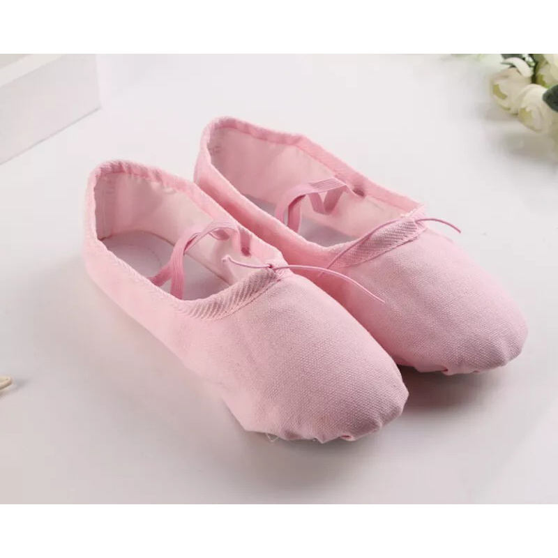 รองเท้าเต้นบัลเลต์และแจ๊สแบบแยกพื้นรองเท้าผ้าใบสำหรับเด็กไปจนถึงผู้ใหญ่