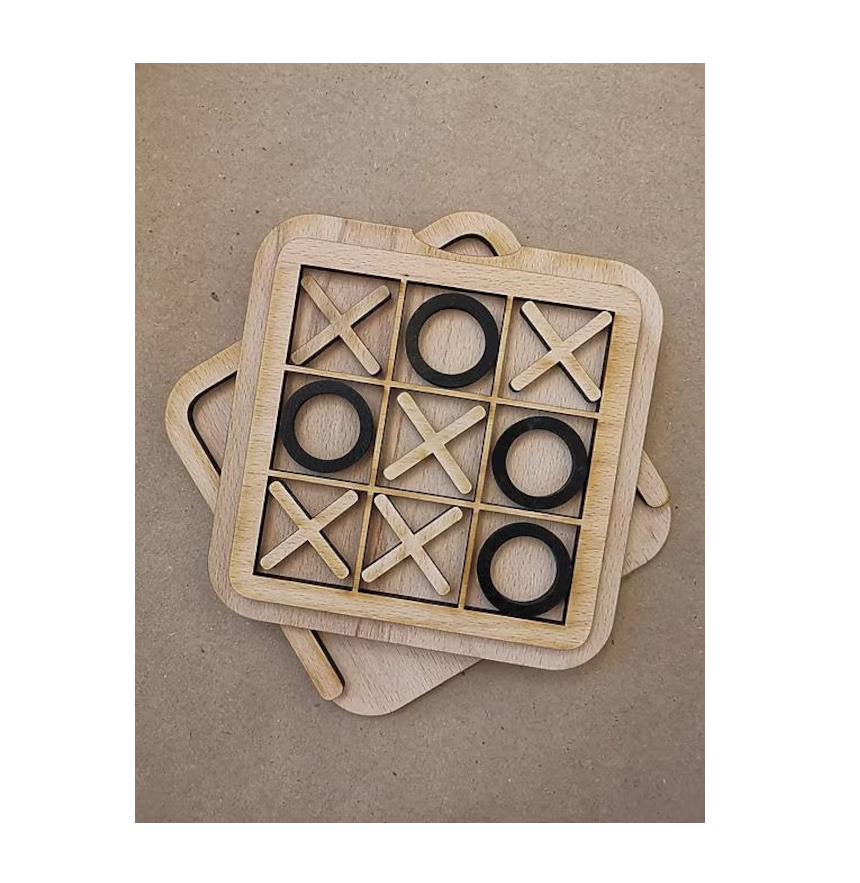 ชุดเกมกระดานคุณภาพสูงเคลือบด้วยผงสีแดงเกมกระดาน TAC TAC Tac Toe ทำจากไม้ทรงสี่เหลี่ยมดีไซน์ชั้นนำ