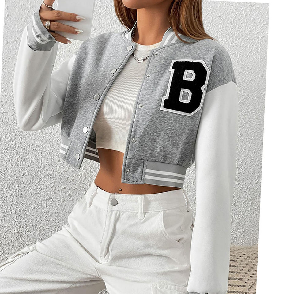 เสื้อแจ็คเก็ตวาร์ซิตี้ทรงครอปสำหรับผู้หญิง ดีไซน์ยอดนิยม สำหรับฤดูหนาว ราคาขายส่ง เสื้อแจ็คเก็ตวาร์ซิตี้ทรงครอปแฟชั่นสำหรับผู้หญิง ราคาถูก