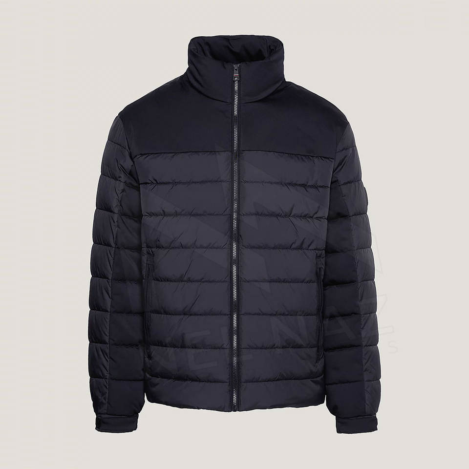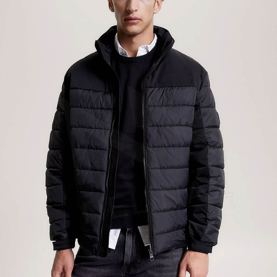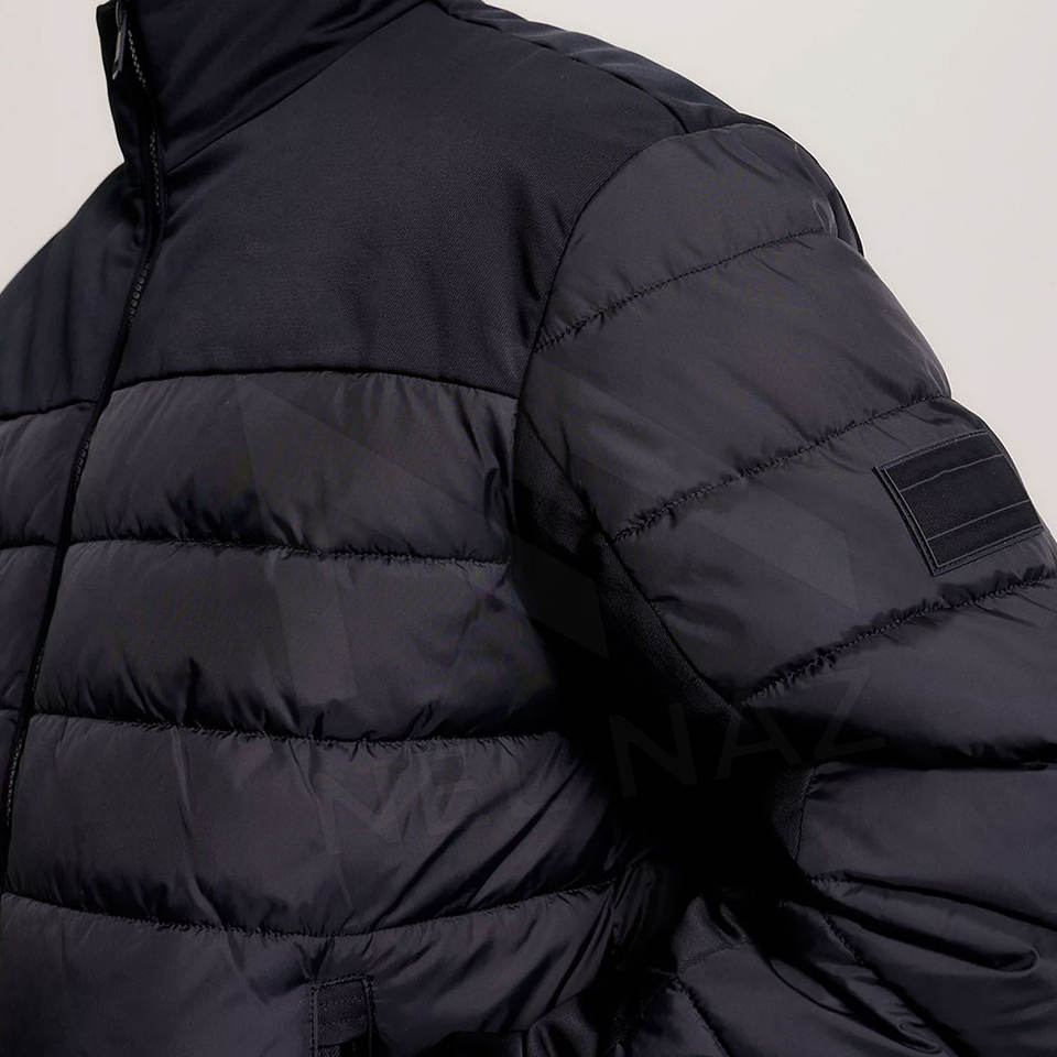 เสื้อแจ็คเก็ตบุนวมสำหรับผู้ชายสีดำ, เสื้อควิลท์ปิดด้วยความร้อนปรับได้มีสายรัดแบรนด์แฟชั่นชั้นนำ