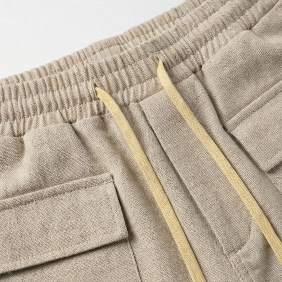 กางเกงขาสั้นคาร์โก้ผู้ชายแฟชั่นชั้นนำ OEM ผลิตตามสั่ง คุณภาพสูง ระบายอากาศได้ดี สไตล์ไฮสตรีท ซักง่าย สวมใส่สบาย มีเชือกผูก