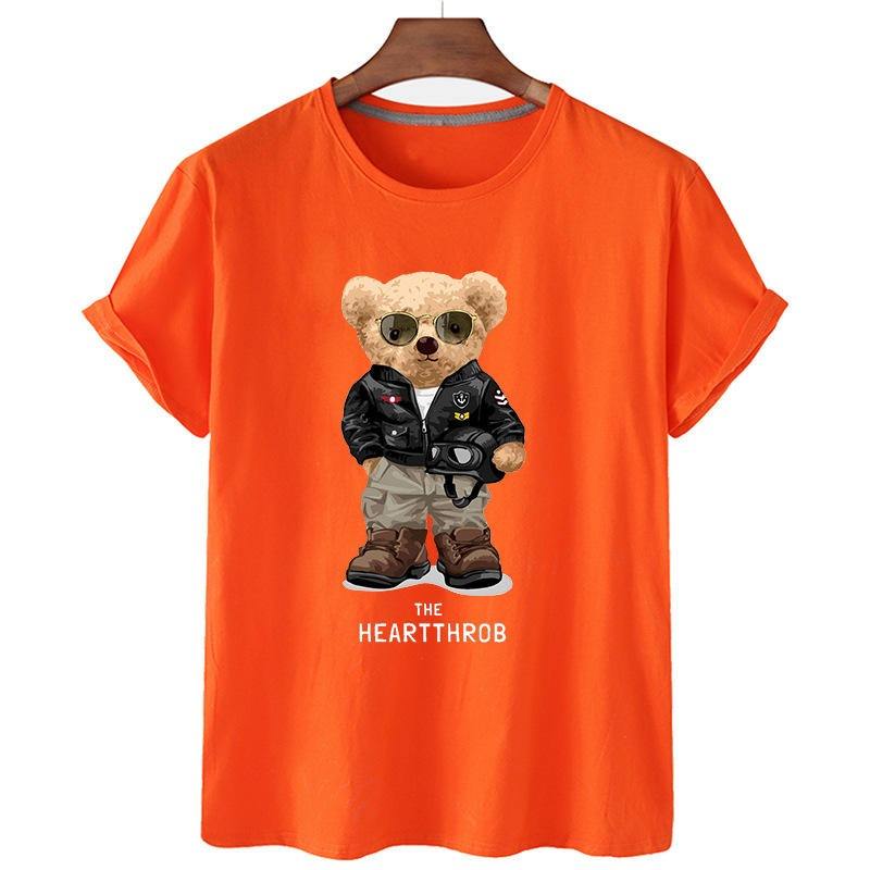เสื้อยืดลำลองสำหรับผู้ชายพิมพ์ลายหมีกีฬาขนาด S-4XL มีโลโก้ในเสื้อยืดผู้หญิง