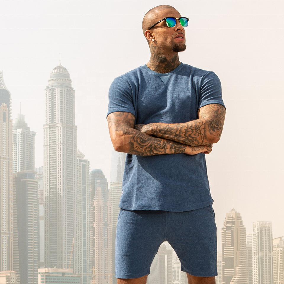 ชุดเสื้อกางเกงสองชิ้นสำหรับผู้ชายชุดเสื้อผ้าสองชิ้นทำจากผ้าฝ้ายชุดออกกำลังกายฟิตเนสชุดกีฬาชายฝาแฝด