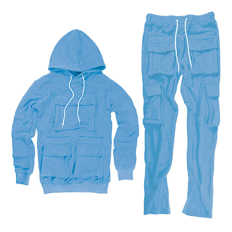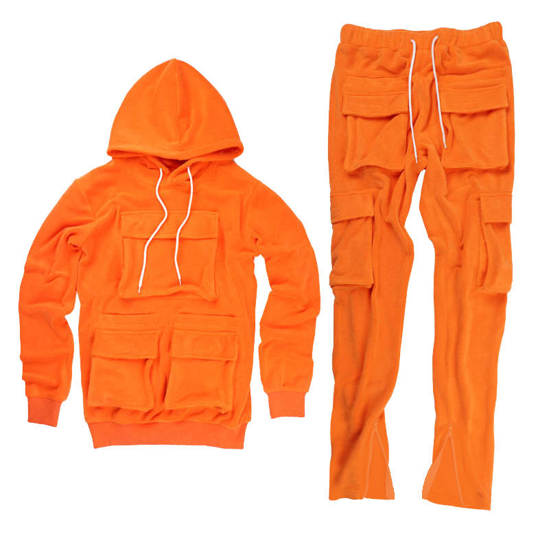 แฟชั่นหลายกระเป๋าฤดูใบไม้ร่วงผู้ชายสองชิ้นชุดคาร์โก้HoodiesชุดSweatsuit Joggersผู้ชายTracksuit Streetสวมใส่