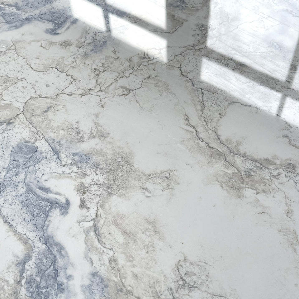 กระเบื้องปูพื้นพอร์ซเลนเคลือบสีขาวฟ้าหินอ่อนขนาด600x600มม. พรีเมี่ยมสำหรับผู้จัดจำหน่ายขายส่งกระเบื้องอินเดีย
