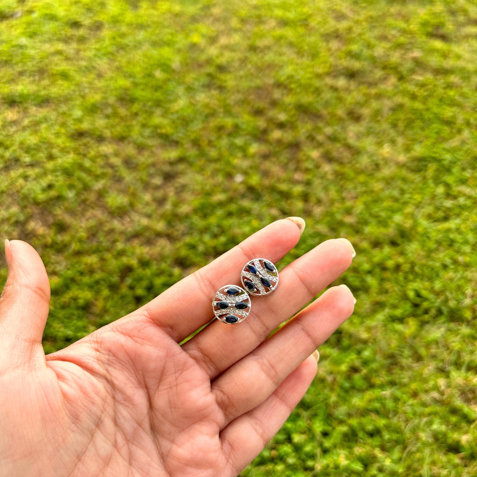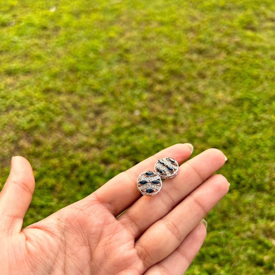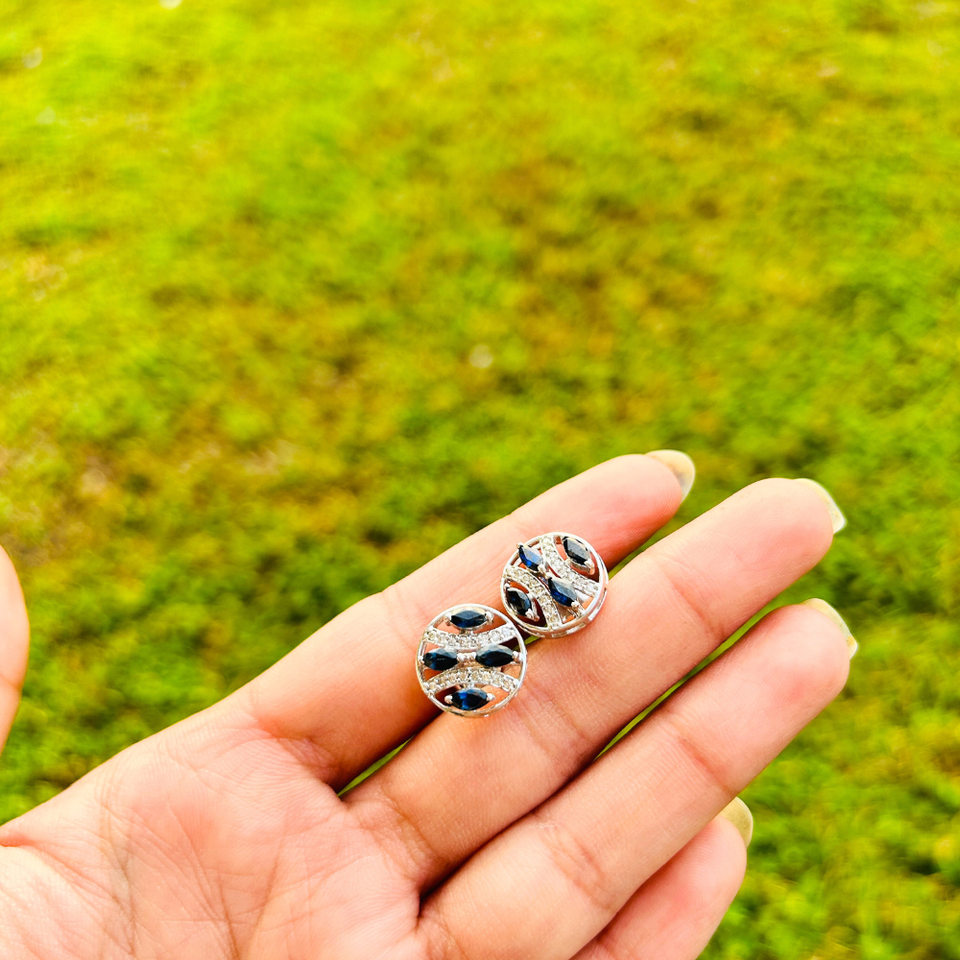 ต่างหูเม็ดเดี่ยวทำจากเงินสเตอร์ลิงเกรดสูงสุด925สีน้ำเงินแซฟไฟร์อเมริกันเพชรมีสไตล์งานแต่งงานที่ทันสมัยครบรอบปี