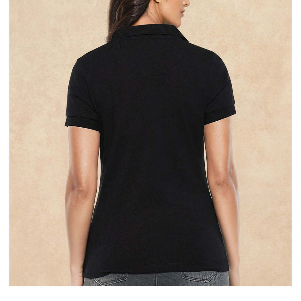 เสื้อเชิ้ตผู้หญิงทรงสลิมสไตล์วินเทจสีขาวสำหรับเล่นกอล์ฟ คอปกพับ แขนสั้น ผ้าฝ้าย 100% พร้อมโลโก้สั่งทำเกรดพรีเมียม