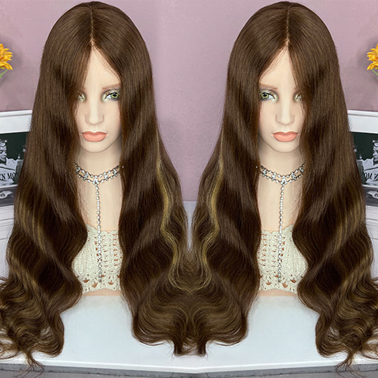 วิกผมแท้คุณภาพสูงแบบดับเบิ้ลดร็อว์ ยุโรป จัดเรียงเส้นผมตามธรรมชาติ ไฮไลท์สี HD ไม่ต้องใช้กาว วิกผมแท้แบบลูกไม้ด้านหน้า