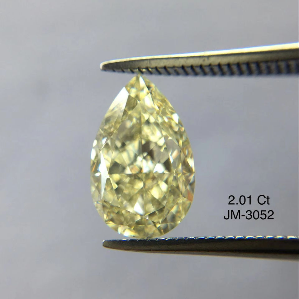 ลูกแพร์ตกแต่งสีเหลืองแฟนซีเกรดเยี่ยมตัดได้2.01กะรัตเพชรหลวมจากธรรมชาติมีความคมชัด VS2ได้รับการรับรอง GIA อินเดียจำนวนมาก