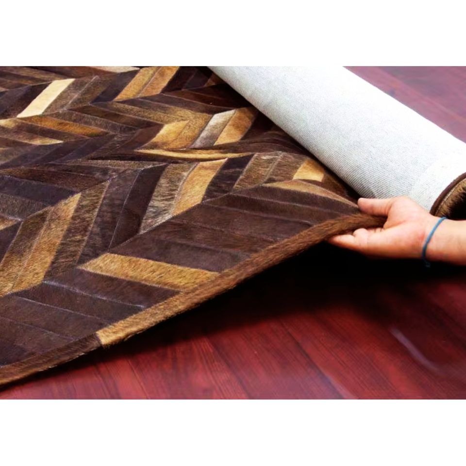 พรมหนังวัวแท้สำหรับปูพื้นแบบแอบสแตรกชุดพรมเย็บปะทำมือกันลื่น