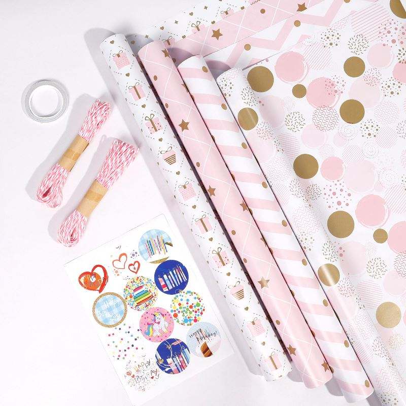 กระดาษเคลือบใหม่สีชมพูวันเกิดสไตล์สาวๆ