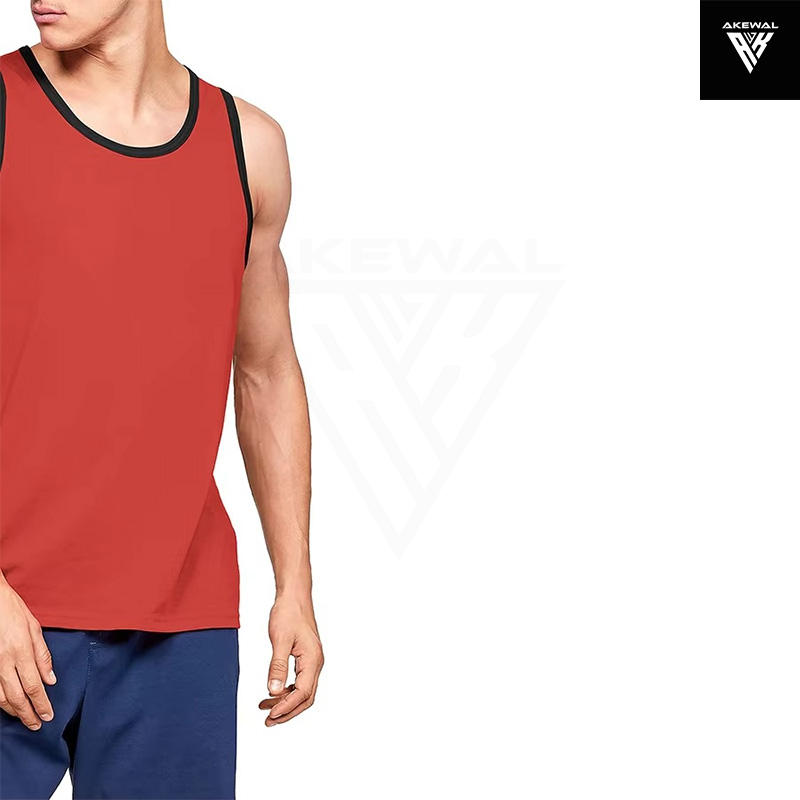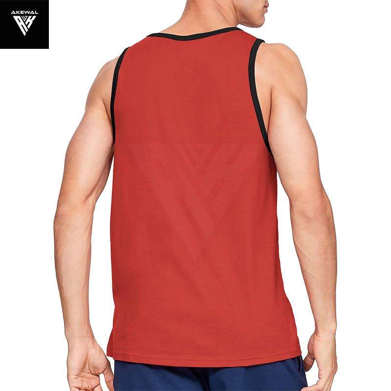 เสื้อกล้ามผู้ชายสีแดง100% ผ้าฝ้ายแห้งเร็วดีไซน์ล่าสุดสำหรับวิ่งฤดูร้อน