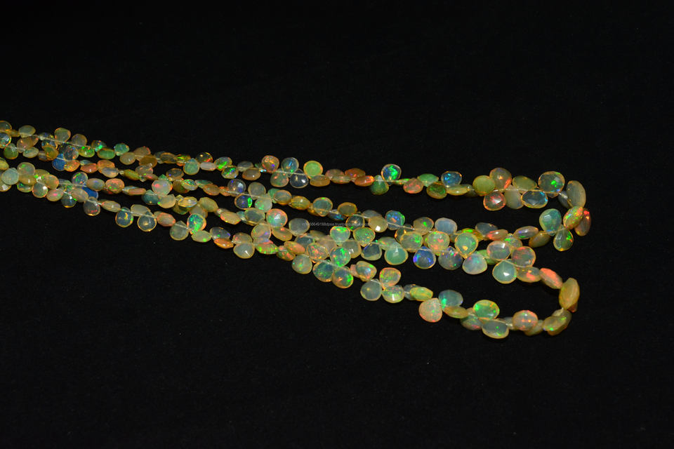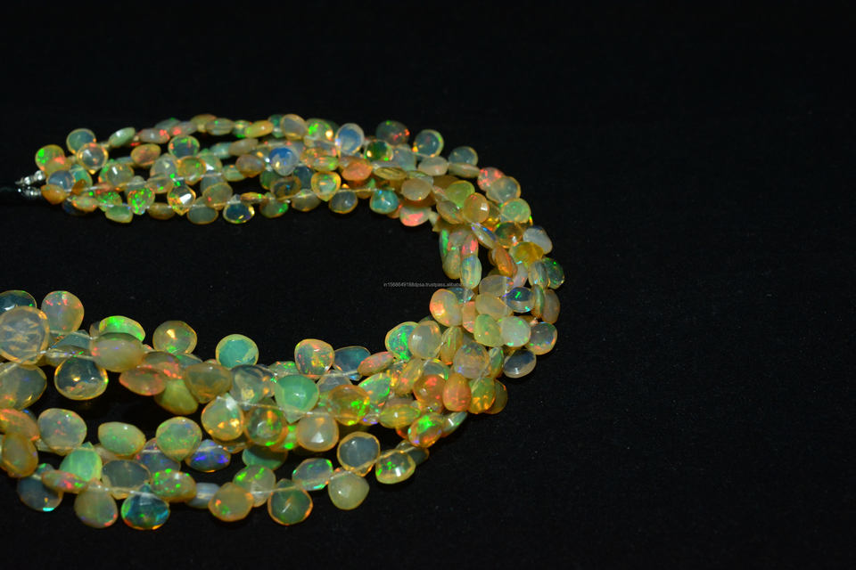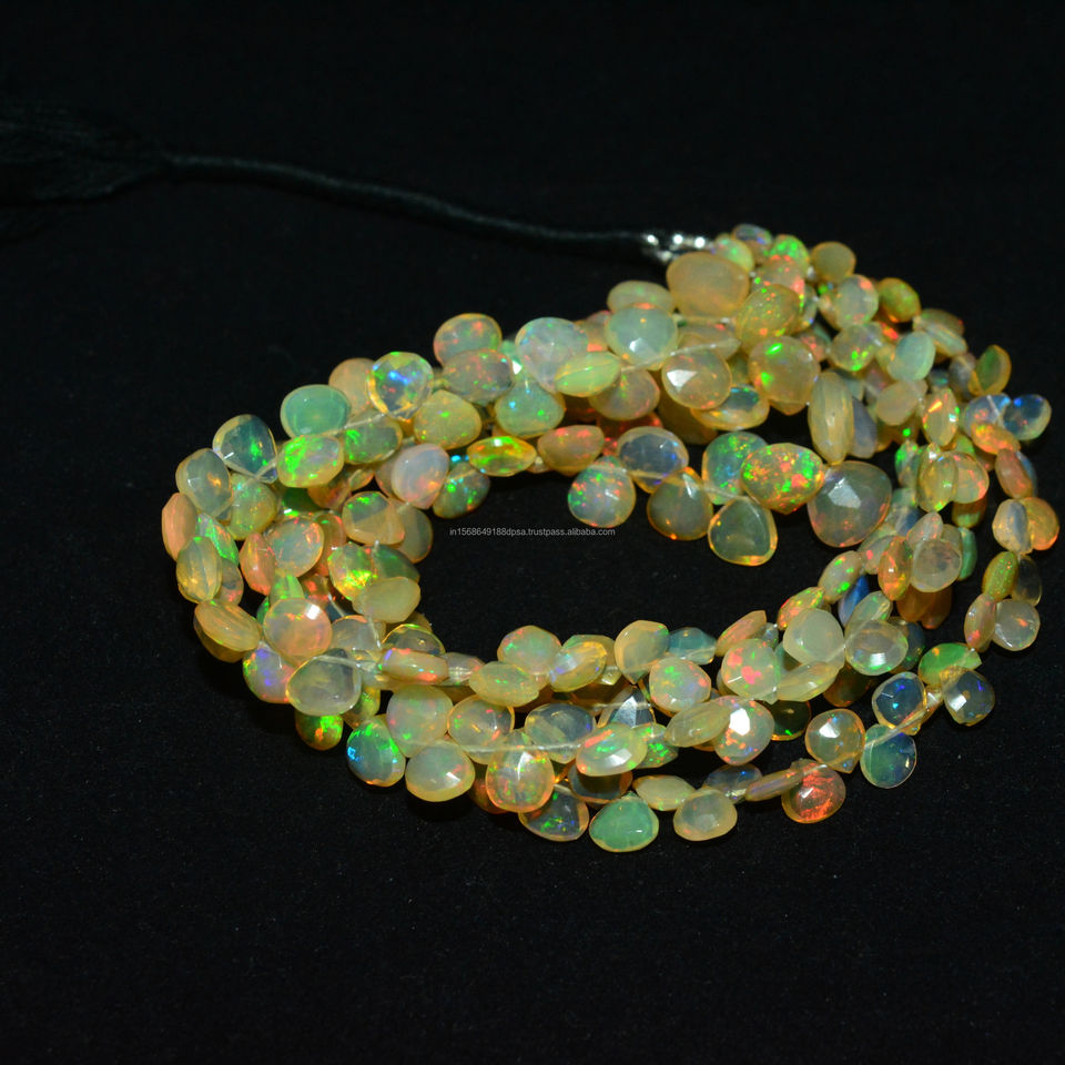 ลูกปัดหินโอปอลโอปอลจากเอธิโอเปียเกรดเอทิโอเปียลูกปัดหลายสีธรรมชาติทรงหัวใจธรรมชาติ