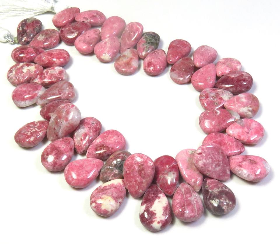 ลูกปัดหินอัญมณีลูกแพร์ thulite สีชมพูเกรดท็อปขนาด11-15มม. 9 "ลูกปัดธรรมชาติ